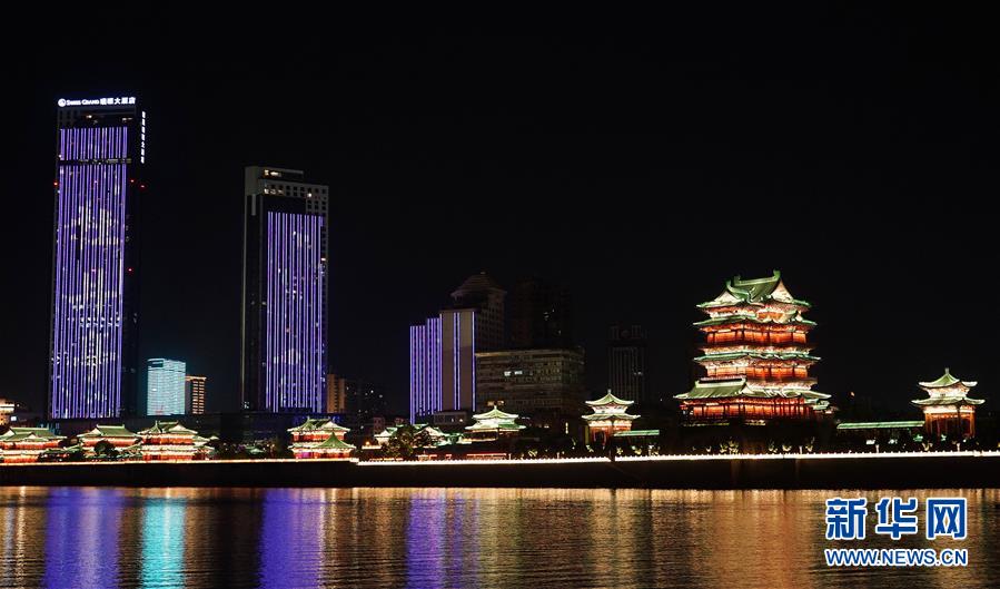 这是江西南昌赣江畔上演的灯光秀(8月6日摄)。 新华社记者 万象 摄