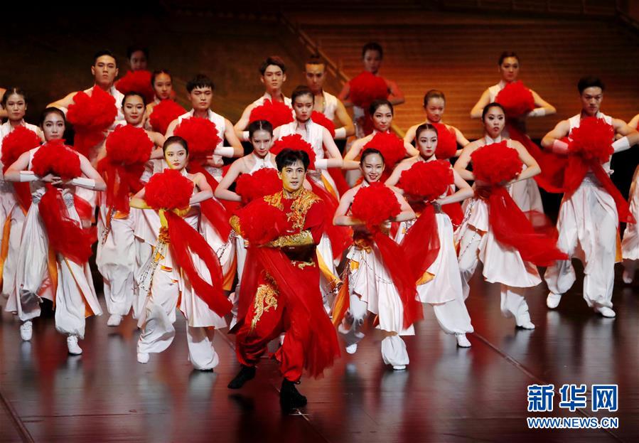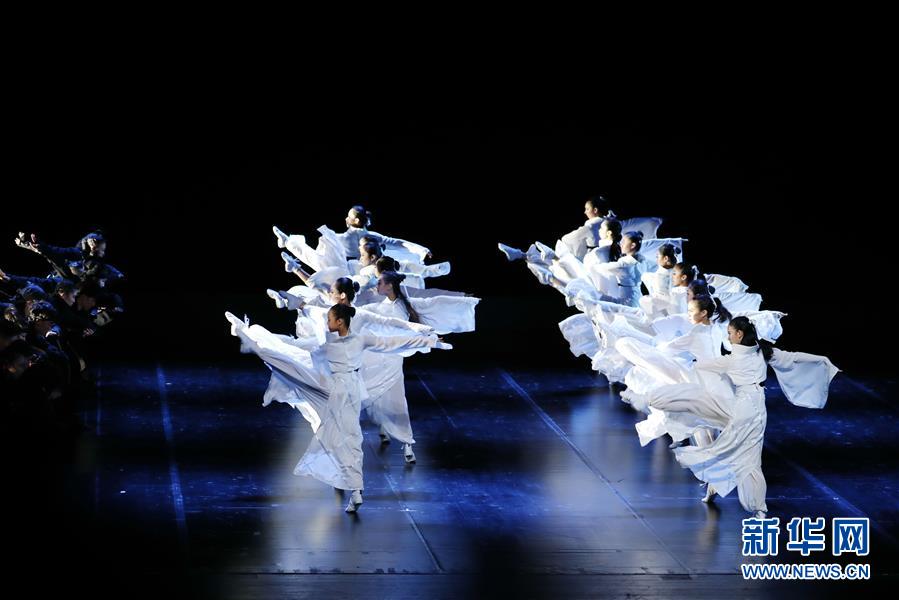 8月7日晚,舞蹈演员们在表演中。 当日,“舞出中国风”庆祝新中国成立70周年公益展演在上海国际舞蹈中心举行。舞蹈家黄豆豆携手30位青年舞者进行志愿演出,并与多家艺术团队合作,共同呈现了一台具有浓郁中国风的原创舞专场,为新中国成立70周年献礼。 新华社记者 刘颖 摄
