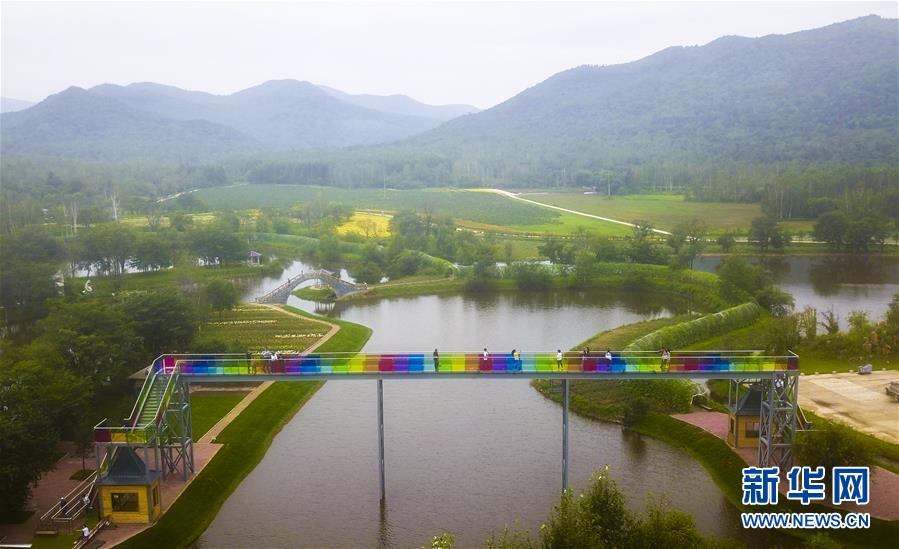8月8日,游客在伊春市九峰山养心谷景区观光。 时值八月,黑龙江省伊春市林区空气清新,凉爽宜人,吸引众多游客。 新华社记者李晓果摄