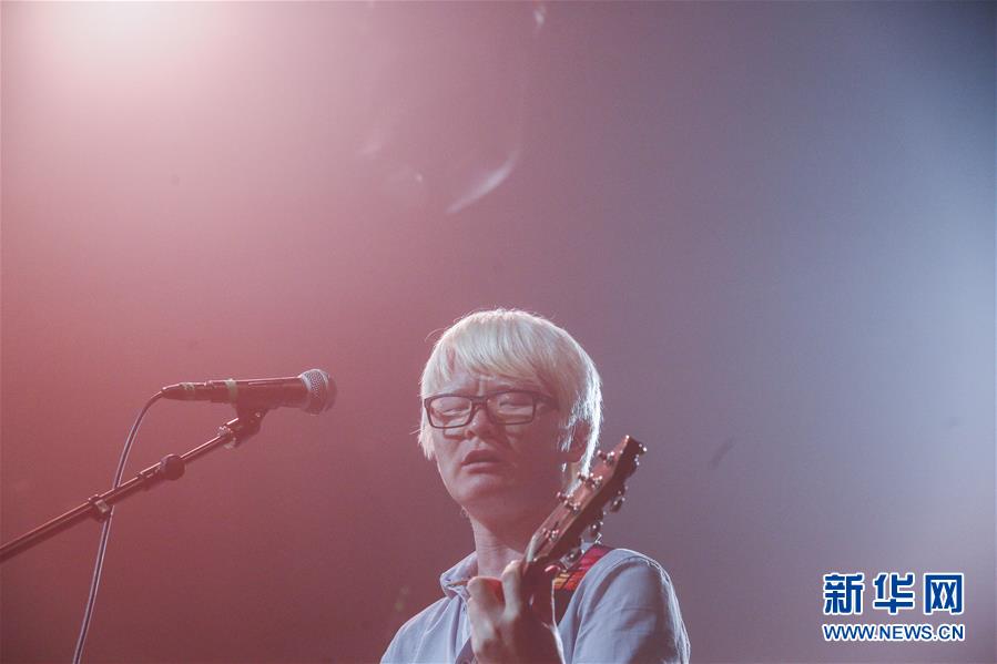8月14日,8772乐队成员谢航程在演唱会上表演。新华社记者张玉薇摄