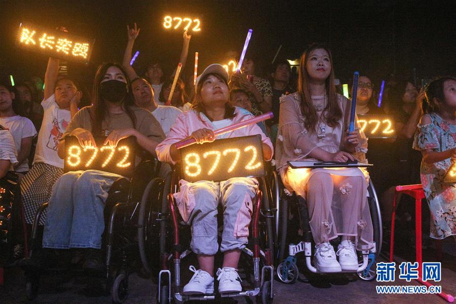 8月14日,观众在欣赏8772乐队表演。新华社记者张玉薇摄