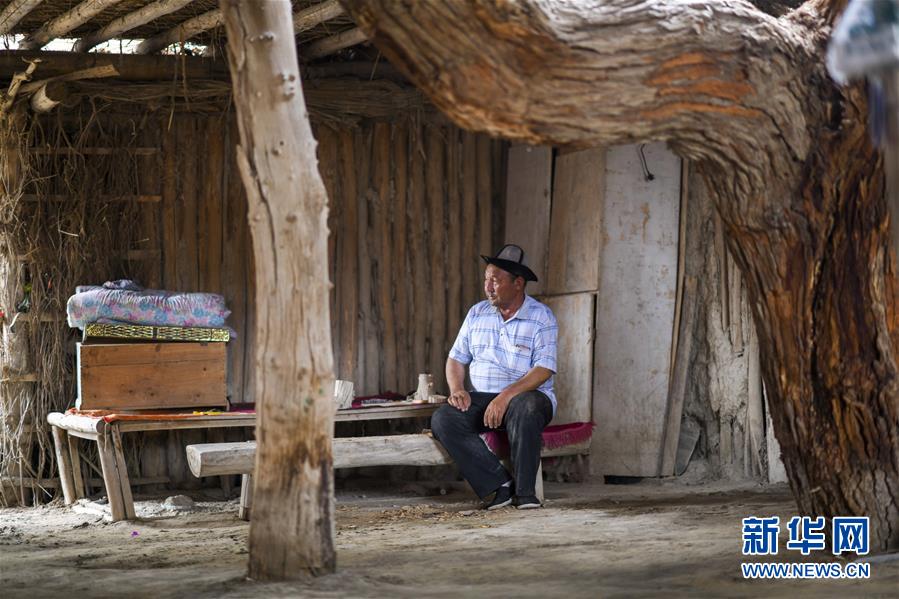 在罗布人村寨,阿木东·艾不东在家中休息(6月21日摄)。新华社记者 赵戈 摄