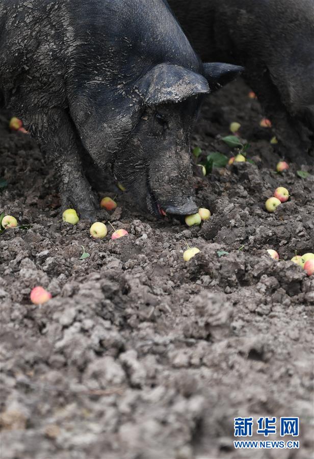 这是8月20日拍摄的果园内散养的水果香猪。新华社记者 王昊飞 摄