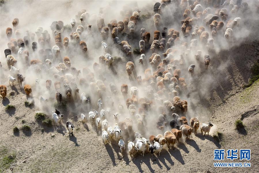 6月6日,转场的牲畜行走在牧道上。新华社记者 丁磊 摄