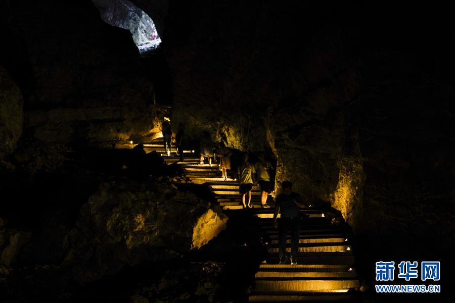游客在重庆金佛山风景区内的灵观洞景点游览体验(8月20日摄)。 重庆市南川区的金佛山风景区属典型的喀斯特地貌,风景秀美,吸引了不少游客。 新华社记者 刘潺 摄