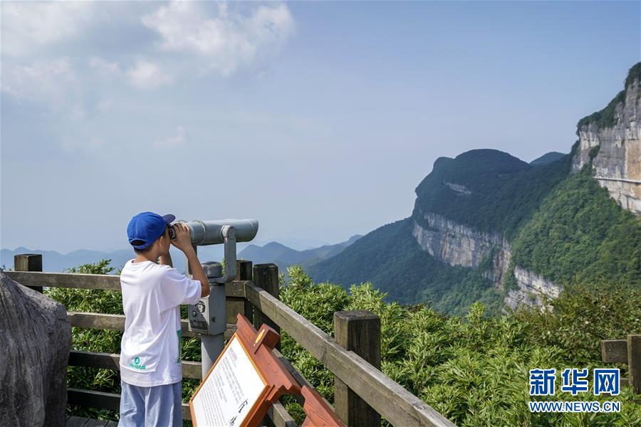游客在重庆金佛山风景区用望远镜观景(8月20日摄)。 新华社记者 刘潺 摄