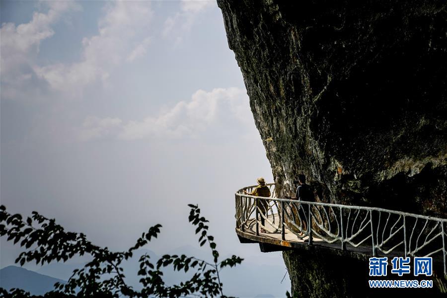 游客在重庆金佛山风景区内的绝壁栈道上游览体验(8月20日摄)。 新华社记者 刘潺 摄
