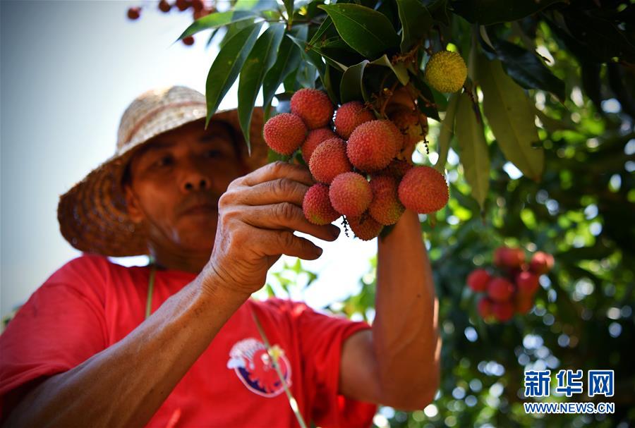 海口市三门坡镇农民在果园采摘荔枝(2019年5月15日摄)。 新华社记者郭程摄