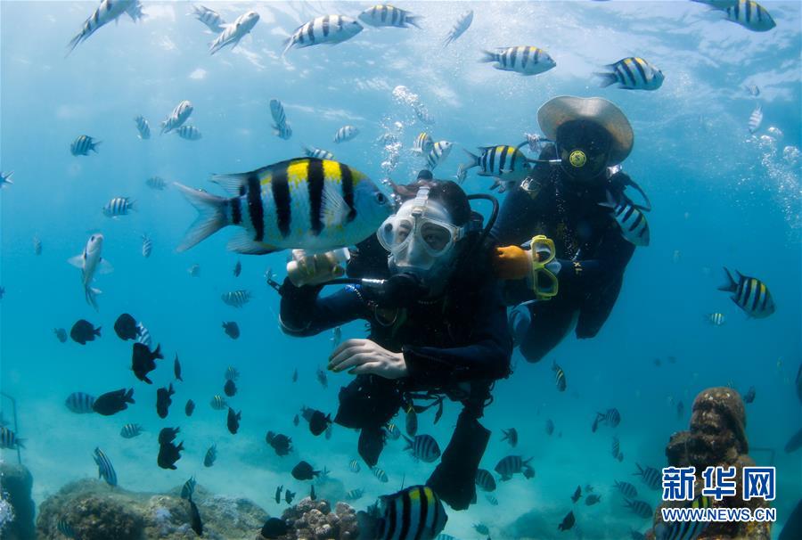 游客在分界洲岛海域体验潜水(2019年7月20日摄)。新华社记者 杨冠宇 摄