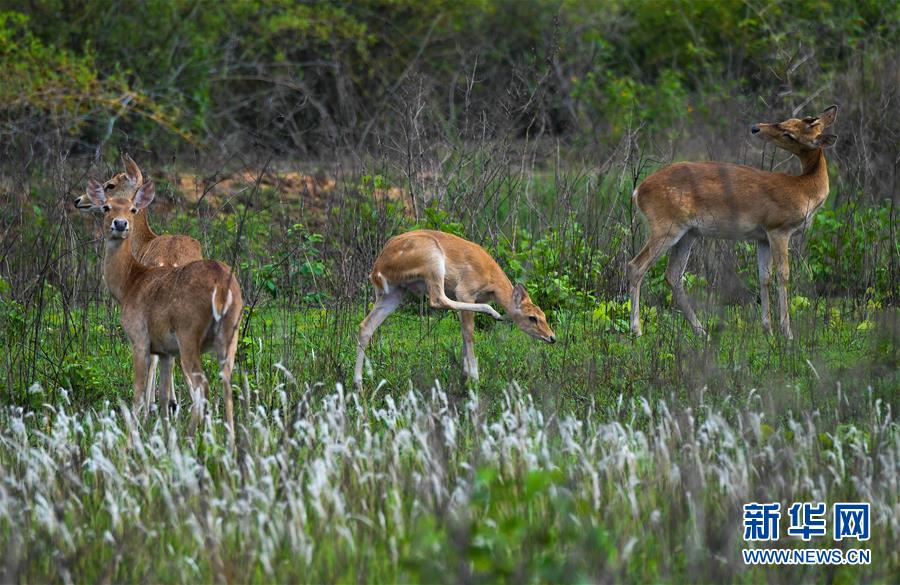 坡鹿在海南大田国家级自然保护区内休息(2018年4月29日摄)。新华社记者 杨冠宇 摄