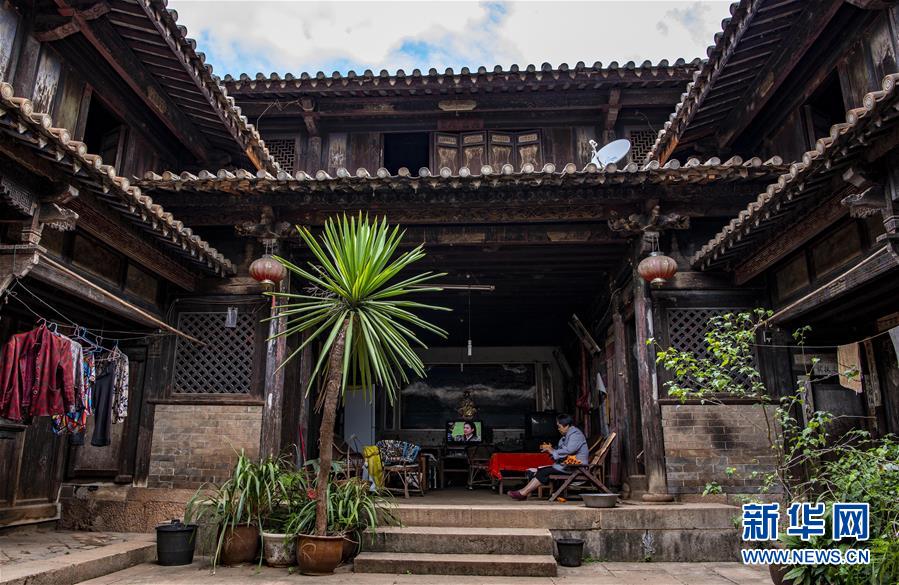 75岁的村民仓小玉在位于石屏县异龙镇符家营村的家中休息(8月8日摄)。 新华社记者 江文耀 摄