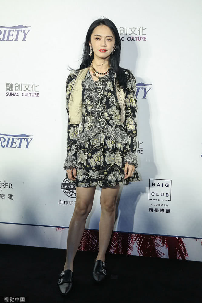 姚晨一头长发披肩,身穿个性印花连衣短裙秀出细长美腿,抬手撩发微笑魅力十足,对镜头摆出俏皮姿势卖萌可爱满分。