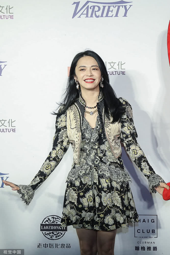 女演员姚晨亮相,穿黑白泡泡袖印花连衣裙,戴项链优雅迷人