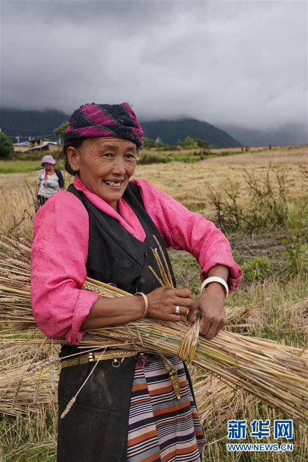 乃村村民在收割小麦(8月26日摄)。新华社记者 多吉占堆 摄
