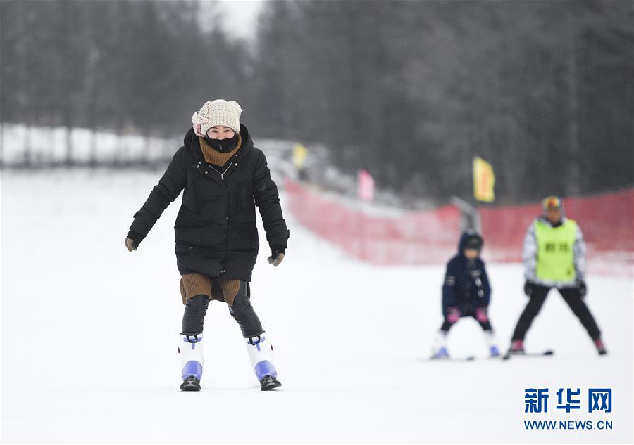 游客在二合雪乡滑雪场内体验滑雪(1月25日摄)。新华社记者许畅摄