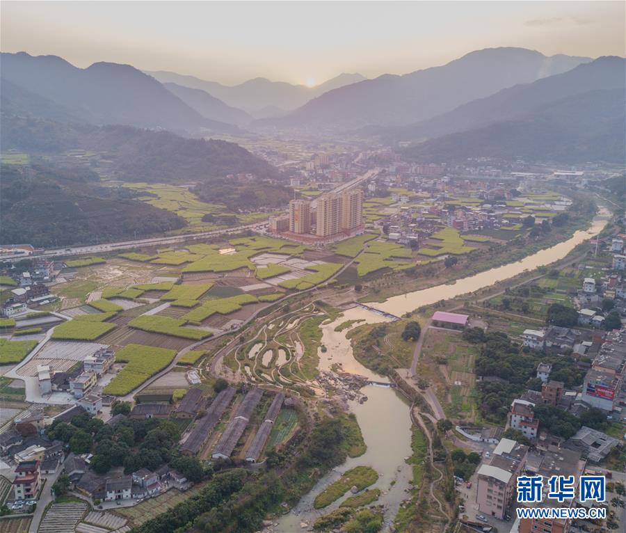 这是福建省永春县东关镇桃溪流域田园风光(1月29日无人机拍摄)。 新华社记者 宋为伟 摄