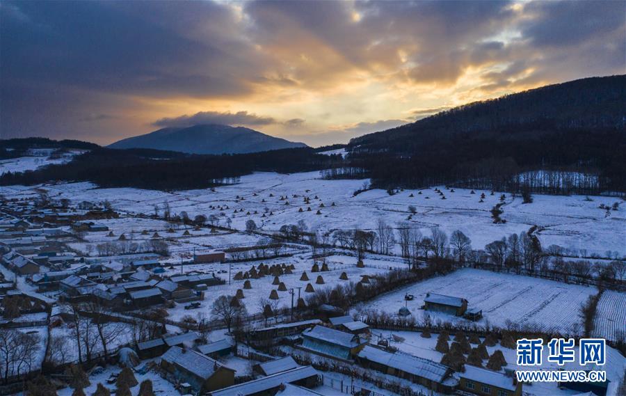 这是1月23日拍摄的二合雪乡的日出(无人机拍摄)。新华社记者许畅摄