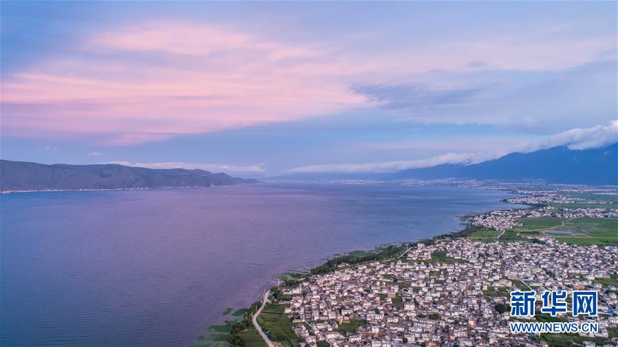云南大理洱海一景(2018年7月5日无人机拍摄)。 新华社记者 胡超 摄