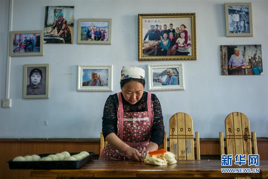 8月29日,付艳梅在列巴房将发酵好的面团揉捏成型。新华社记者张豪夫摄