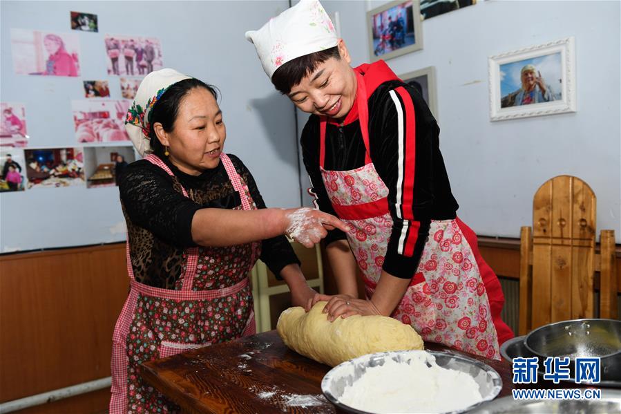 8月27日,付艳梅在列巴房教一名学徒揉面团。新华社记者刘磊摄