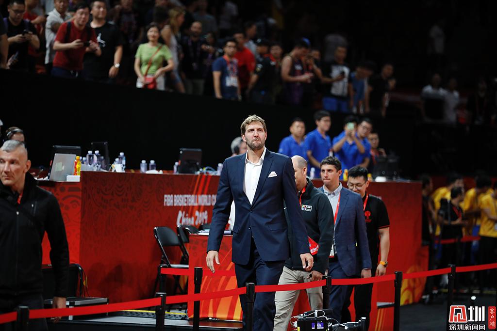 比赛结束后,德国籍球星诺维斯基来到现场。