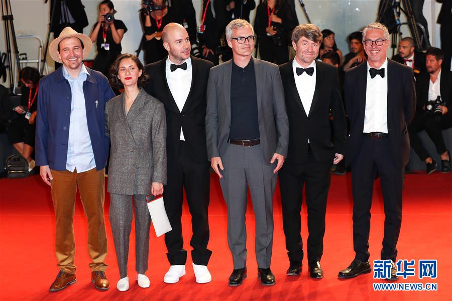 9月3日,在意大利威尼斯,威尼斯电影节主竞赛单元影片《关于无尽》部分主创人员亮相首映红毯。 新华社记者 张铖 摄