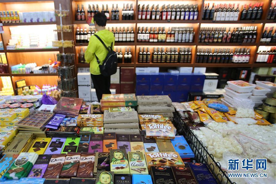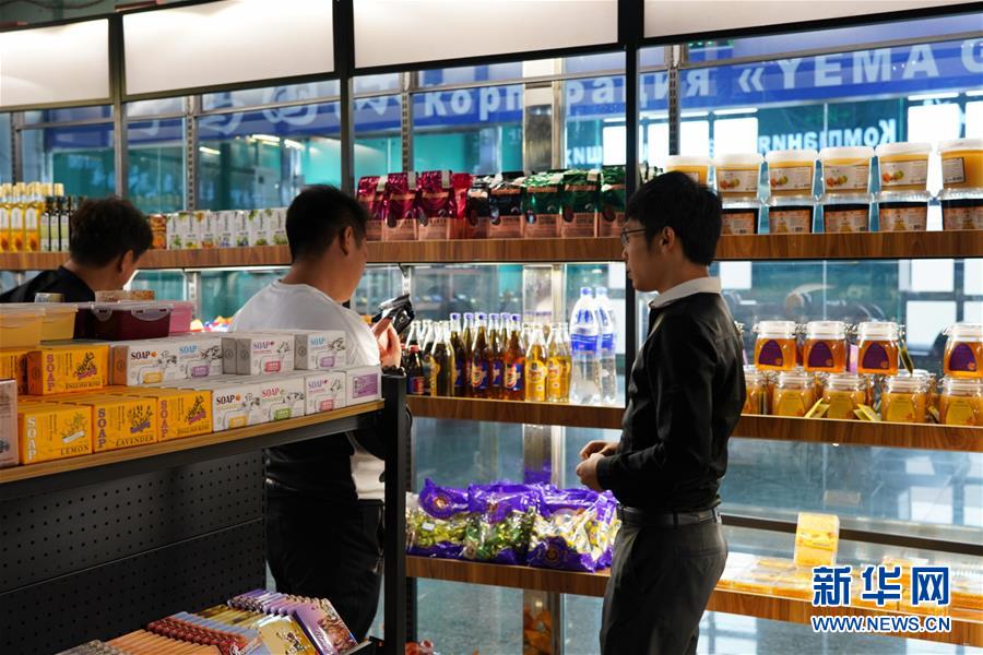 这是9月4日在新疆塔城地区巴克图口岸的丝路文化商品城内拍摄的进口产品。 新华社记者沙达提摄