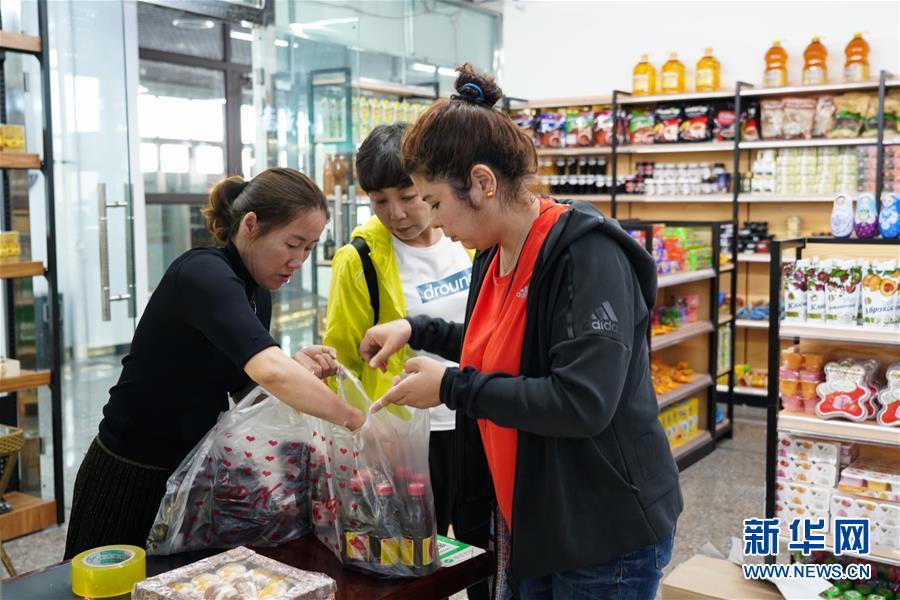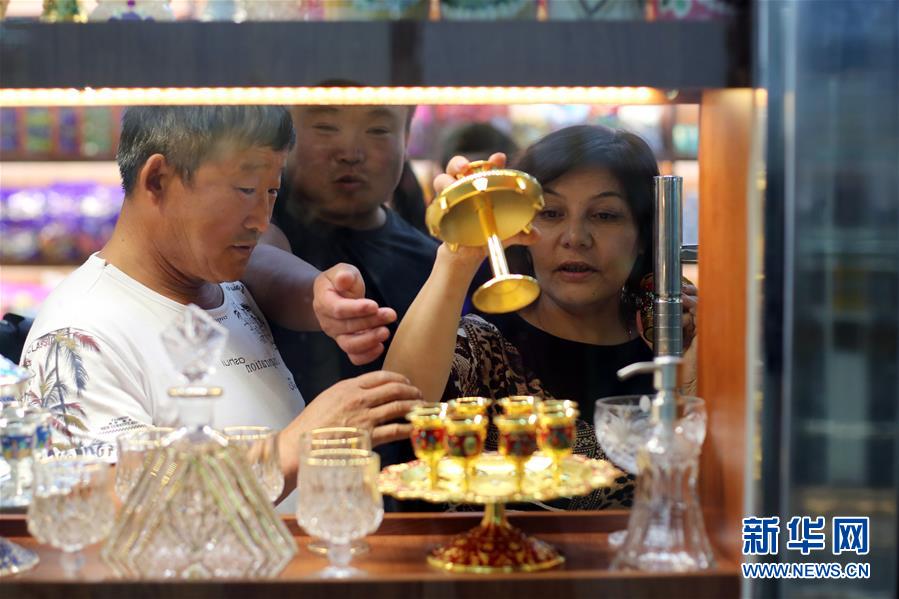 9月4日,在新疆塔城地区巴克图口岸,顾客在丝路文化商品城内选购商品。 新华社记者安希雅摄