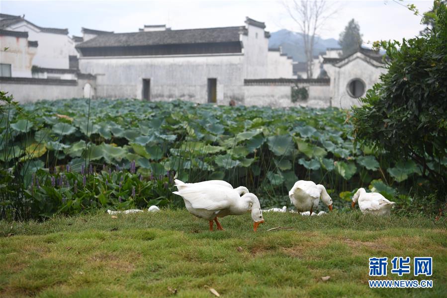 这是呈坎村内的荷塘和古民居(8月28日摄)。新华社记者刘军喜摄