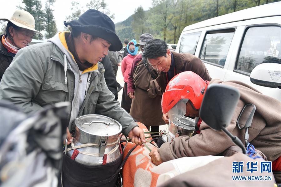9月8日,在四川省康定市,牧民骑着摩托来到一家当地专门生产牦牛乳制品公司的工厂送牦牛奶。新华社记者孙瑞博摄