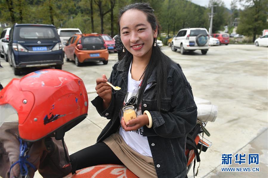 9月8日,在四川省康定市一家牦牛乳制品公司的工厂,藏族姑娘根翁品尝牦牛奶制成的冰激凌。新华社记者孙瑞博摄