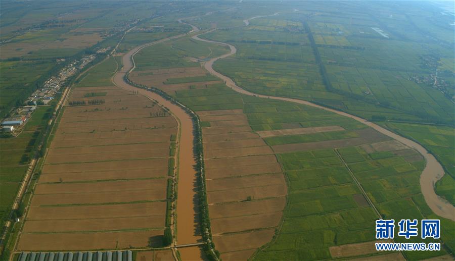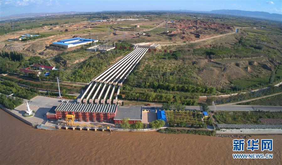 宁夏引黄古灌区唐正闸。2017年10月宁夏引黄古灌区入选世界灌溉工程遗产,这也是黄河干流上的首个世界灌溉工程遗产(9月1日无人机拍摄)。新华社记者刘诗平摄