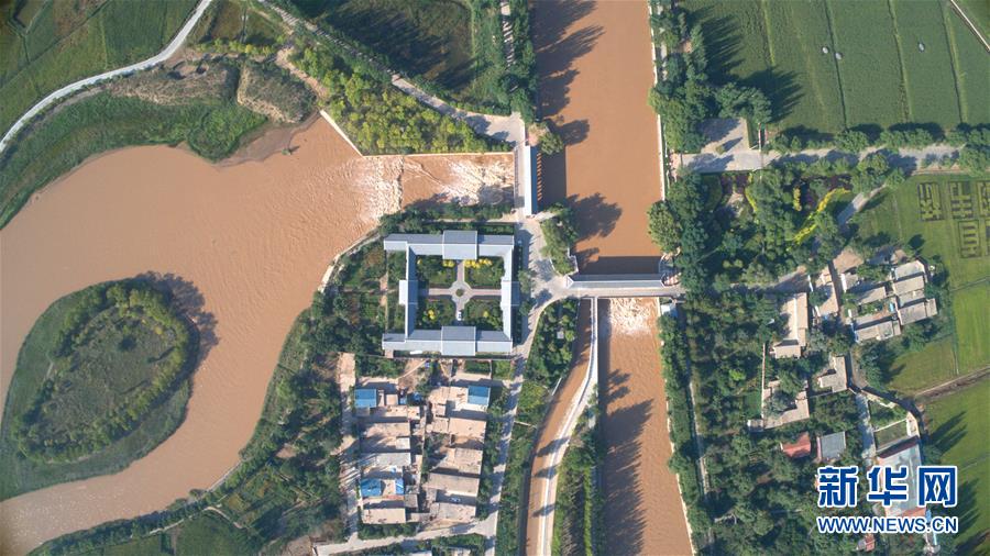这是宁夏引黄古灌区汉惠闸(9月1日无人机拍摄)。2017年10月宁夏引黄古灌区入选世界灌溉工程遗产,这也是黄河干流上的首个世界灌溉工程遗产。新华社记者刘诗平摄