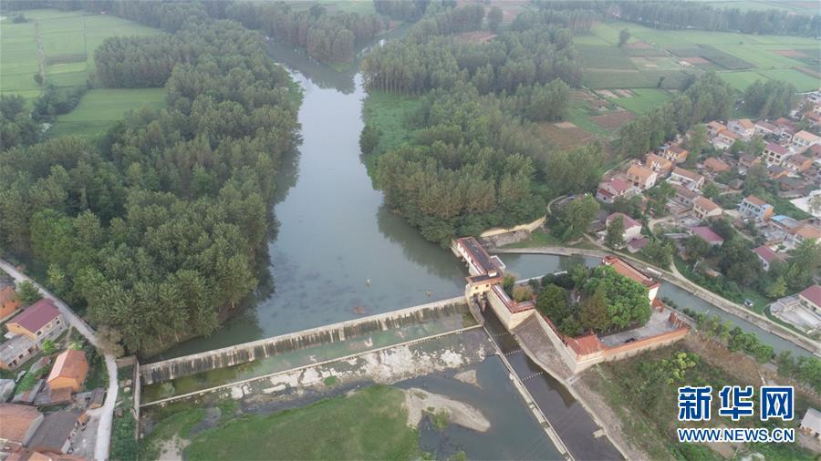 8月22日拍摄的湖北襄阳长渠渠首(无人机拍摄)。新华社记者熊琦摄