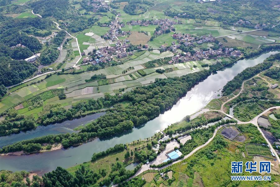 这是6月30日无人机拍摄的广西兴安县灵渠及周边景色。 位于广西兴安县的灵渠是世界上保存最完整的古代水利工程之一,至今仍发挥着农田灌溉、排洪泄洪作用。2018年,灵渠入选世界灌溉工程遗产名录。 新华社记者 陆波岸 摄