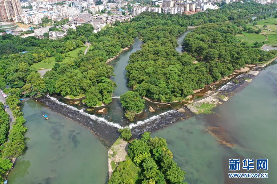 这是6月30日无人机拍摄的广西兴安县灵渠。 位于广西兴安县的灵渠是世界上保存最完整的古代水利工程之一,至今仍发挥着农田灌溉、排洪泄洪作用。2018年,灵渠入选世界灌溉工程遗产名录。 新华社记者 周华 摄