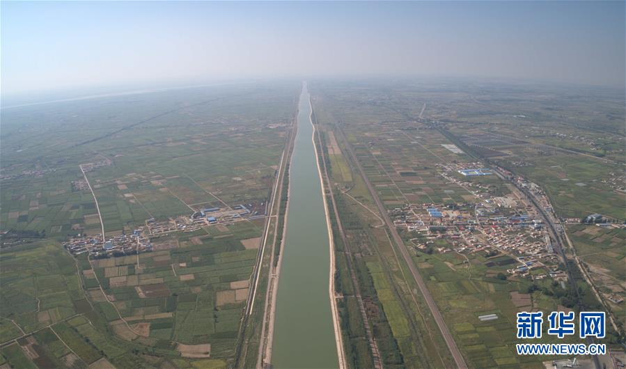 9月4日无人机拍摄的河套灌区总干渠上游渠道。 新华社记者 刘诗平 摄