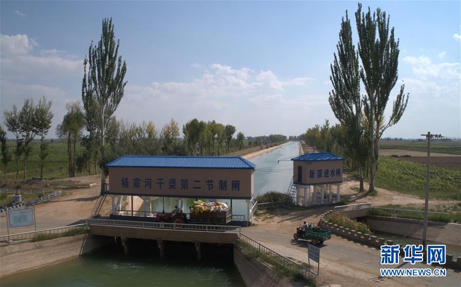 9月4日无人机拍摄的河套灌区杨家河干渠第二节制闸。 新华社记者 刘诗平 摄