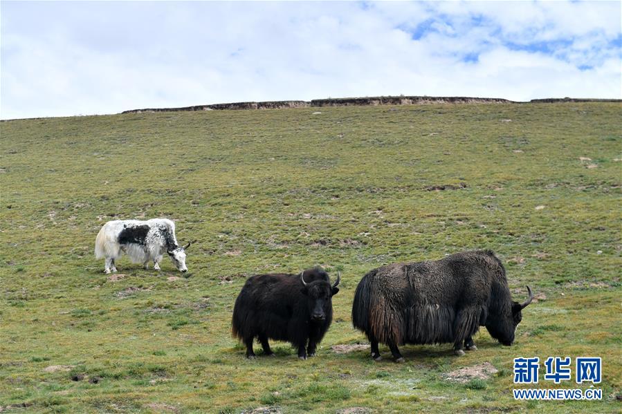 这是在青海省玉树藏族自治州治多县治渠乡同卡村拍摄的牧民合作社草场上的牦牛(9月12日摄)。 新华社记者 孙瑞博 摄