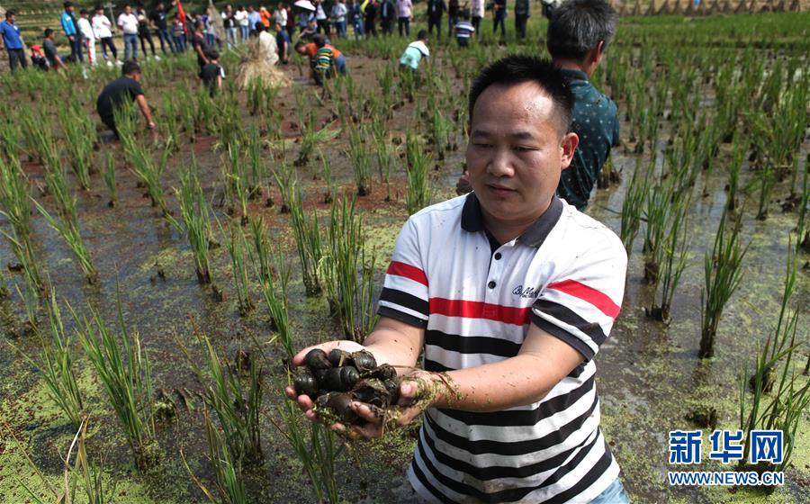 10月28日,在广西融水苗族自治县拱洞乡龙令村,村民参加摸螺比赛。新华社记者 黄孝邦 摄