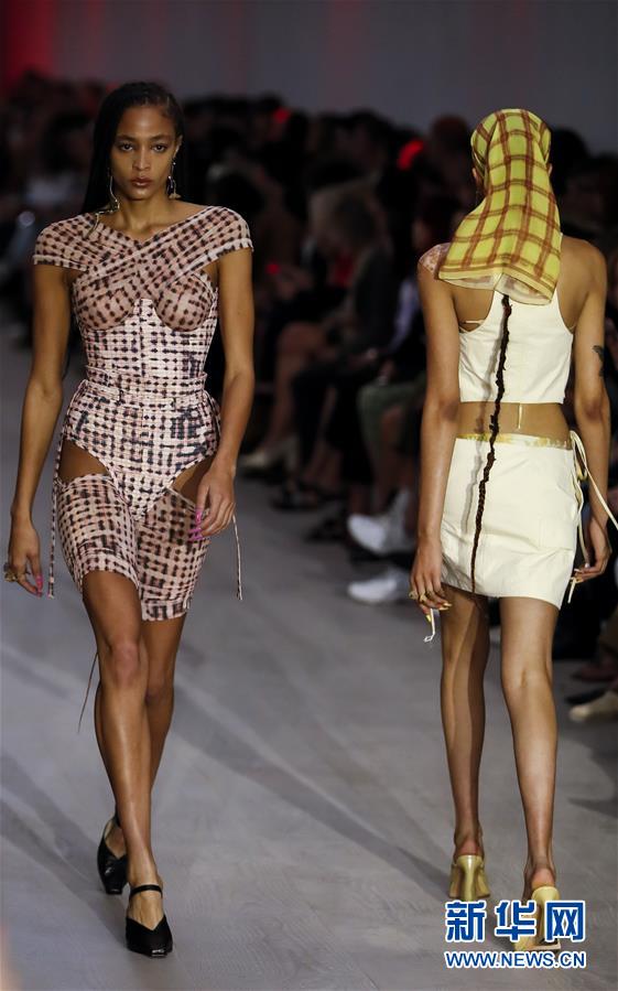 9月17日,在英国伦敦,模特在2020伦敦春夏时装周上展示Charlotte Knowles品牌服饰。 新华社记者 韩岩 摄