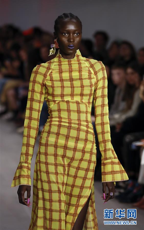 9月17日,在英国伦敦,模特在2020伦敦春夏时装周上展示Charlotte Knowles品牌服饰。 新华社记者 韩岩 摄