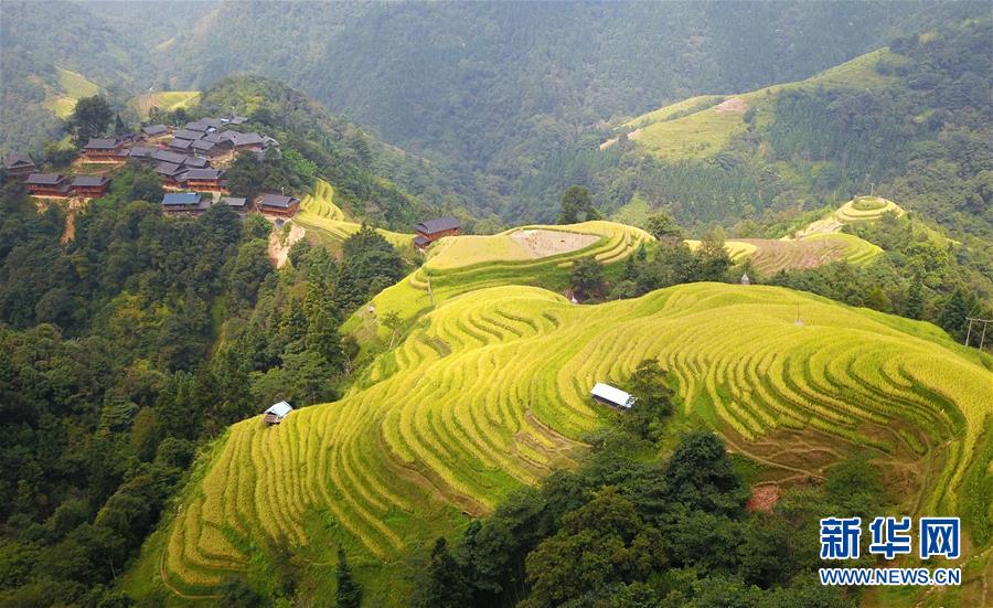 这是9月17日无人机拍摄的贵州省榕江县计划乡计划村阳开苗寨梯田。新华社记者 杨文斌 摄