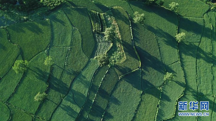 这是8月4日无人机拍摄的安徽黟县宏村风景区附近的农田。新华社记者张端摄