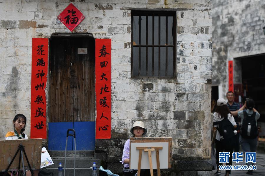 4月24日,绘画爱好者在西递风景区写生。新华社记者张端摄