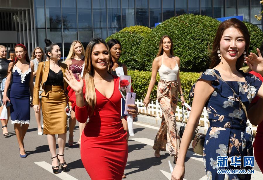 9月22日,参赛选手抵达青岛邮轮母港准备参加外拍活动。 新华社记者 李紫恒 摄