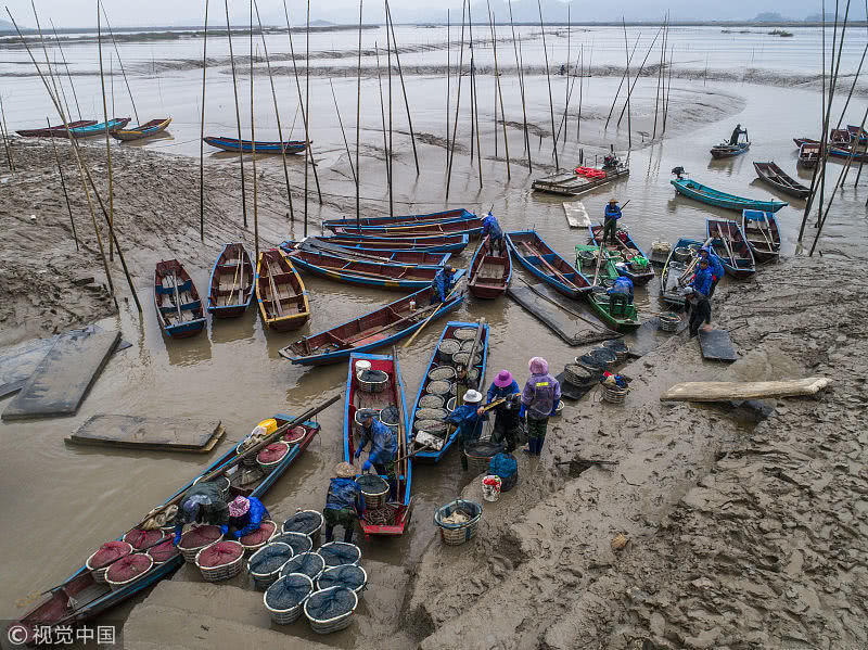 浙江台州,三门县花桥镇栅下村的文化礼堂前,村民们冒雨和商贩交易蛏苗,现场一片繁忙。据了解,花桥蛏苗属于野生苗,存活率高,易成长,极受市场欢迎,一到捕捞季节,辽宁、山东、江苏和浙江的养殖户和蛏苗小贩争相到花桥购买优质蛏苗。