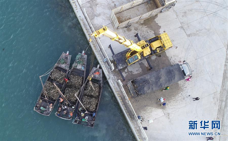 辽宁长海渔民打捞牡蛎 场面壮观!