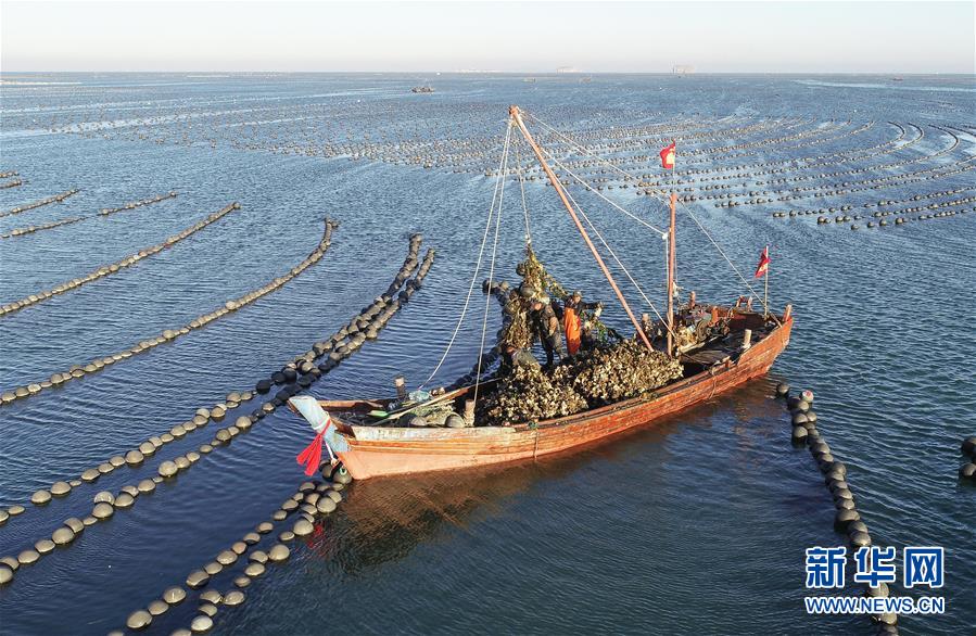 辽宁长海渔民打捞牡蛎 场面壮观!