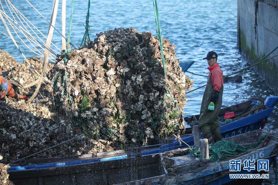 辽宁长海渔民打捞牡蛎 场面壮观!